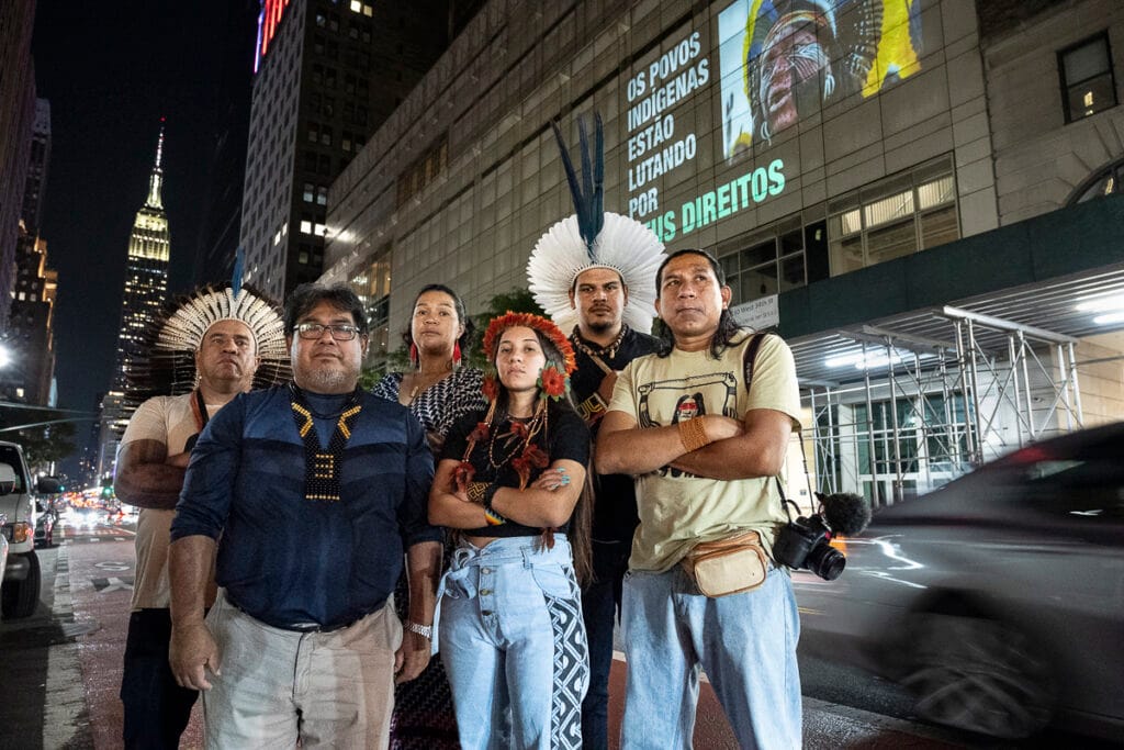 Organizada por lideranças indígenas em conjunto com a sociedade civil, a atividade tem o objetivo de alertar os líderes mundiais que estão chegando a Nova Iorque para a Conferência, sobre a escalada do desmatamento e violência do governo do presidente Jair Bolsonaro.